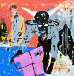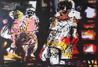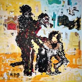 His paintings depict several influences which he has cleverly welded into a nuanced visual language that enables him to comment forcefully on the human condition.