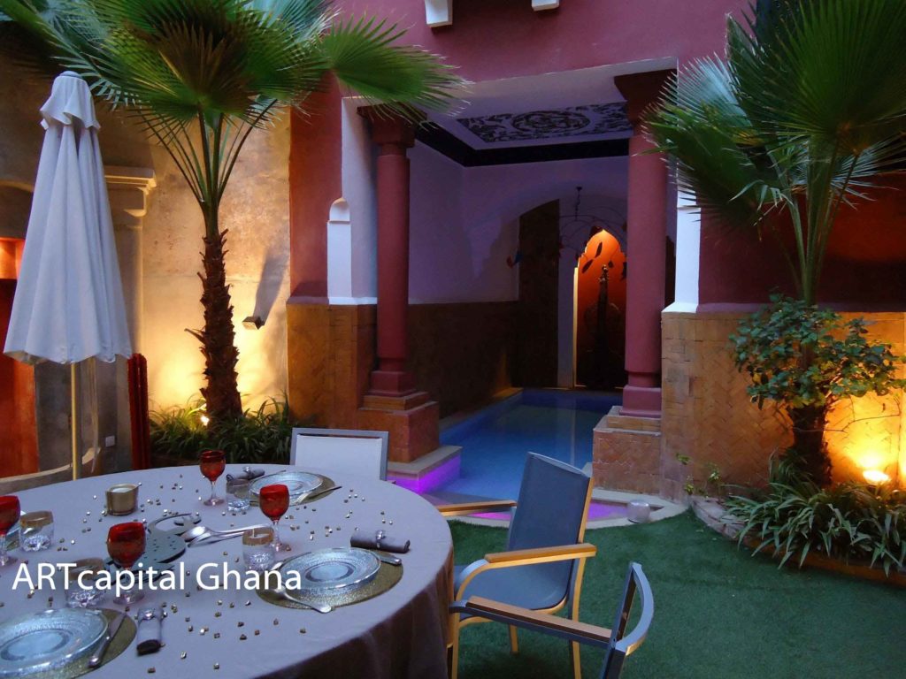 When night falls, an inspired lighting scheme further accentuates the charm of this thoroughly evocative courtyard and splash pool.