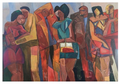 Through his choice of vibrant blues, reds and yellow juxtaposed with earth tones of browns and ochre; Setordji insinuates in his often crowded compositions, that deep thought must be the basis of action in the myriad aspects of our lives.