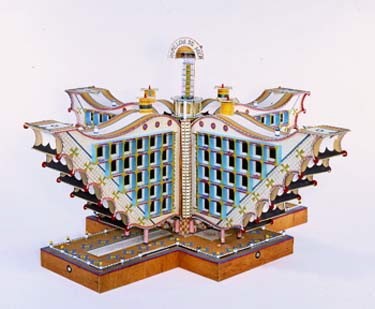 His miniature architectural models demonstrated meticulous detail and were punctuated with bursts of color that left a lasting impression on the viewer.