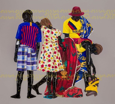 Now to Philips; the October 15 evening sale of 20th-century and contemporary art got off to a sizzling start when a barely-dry painting by Ghanaian-born artist Serge Attukwei Clottey, FASHION ICONS (2020–21), which was estimated at £30,000 to £40,000, soared to £340,200 ($465,500).