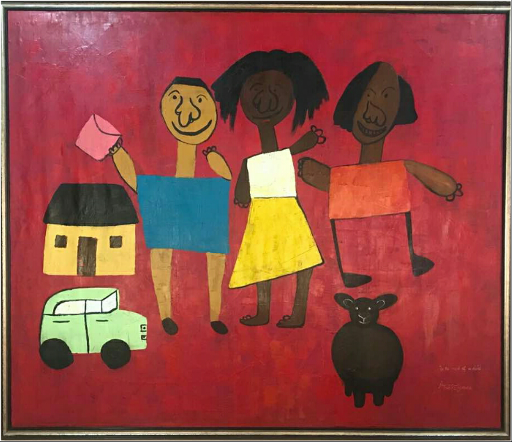 IN THE MIND OF A CHILD: Atwereboanda Asamoah, 161 x 190 cm, acrylic on canvas, 2015; signed, titled and dated- left .