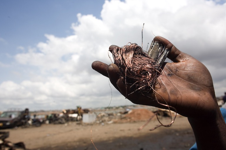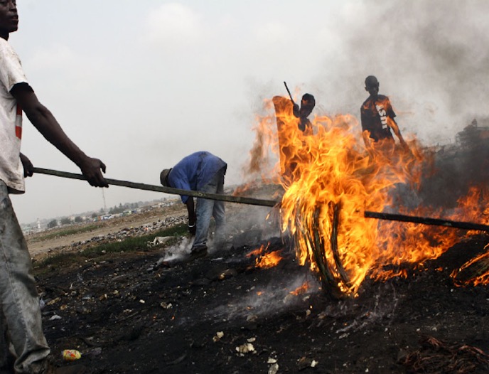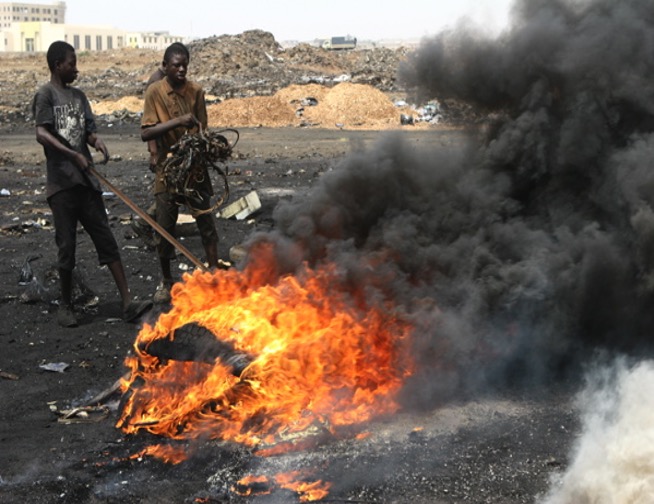 They dissect with their bare hands and burn the computer parts from Europe and the US in order to salvage metals that can be sold. What they retrieve is mainly copper which is often bought by traders and turned into cheap bracelets either in Ghana or Nigeria for export to Europe.