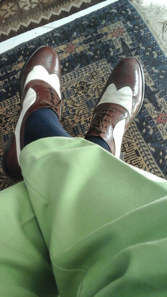 Today, spectators are the perfect shoes for casual Fridays, weekends, outdoor parties and weddings- but certainly not funerals…..er, perhaps the “one year” celebration with its emphasis on black and white will be ok.