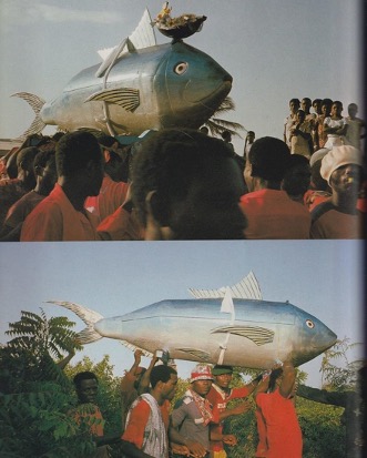 Roberta Bonetti contends, “As story-telling symbols, fantasy coffins are concise and pointed narratives expressed in a type of visual ‘writing’ that negotiates a new identity for the deceased”.
