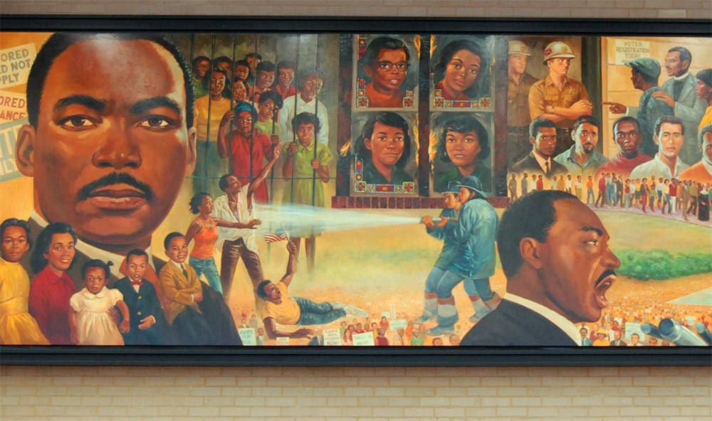 Today, we simply present 17 murals of MLK for your most serious contemplation in the belief that these images proclaim his place in the world’s pantheon of heroes.