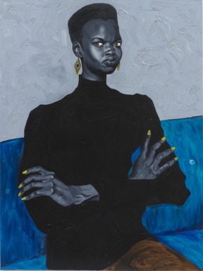 But the current work echoes the portraiture style articulated by Barkley L. Hendricks, Kerry James Marshall and Kehinde Wiley, albeit with an idiosyncratic perspective and of course superlative technical skill.