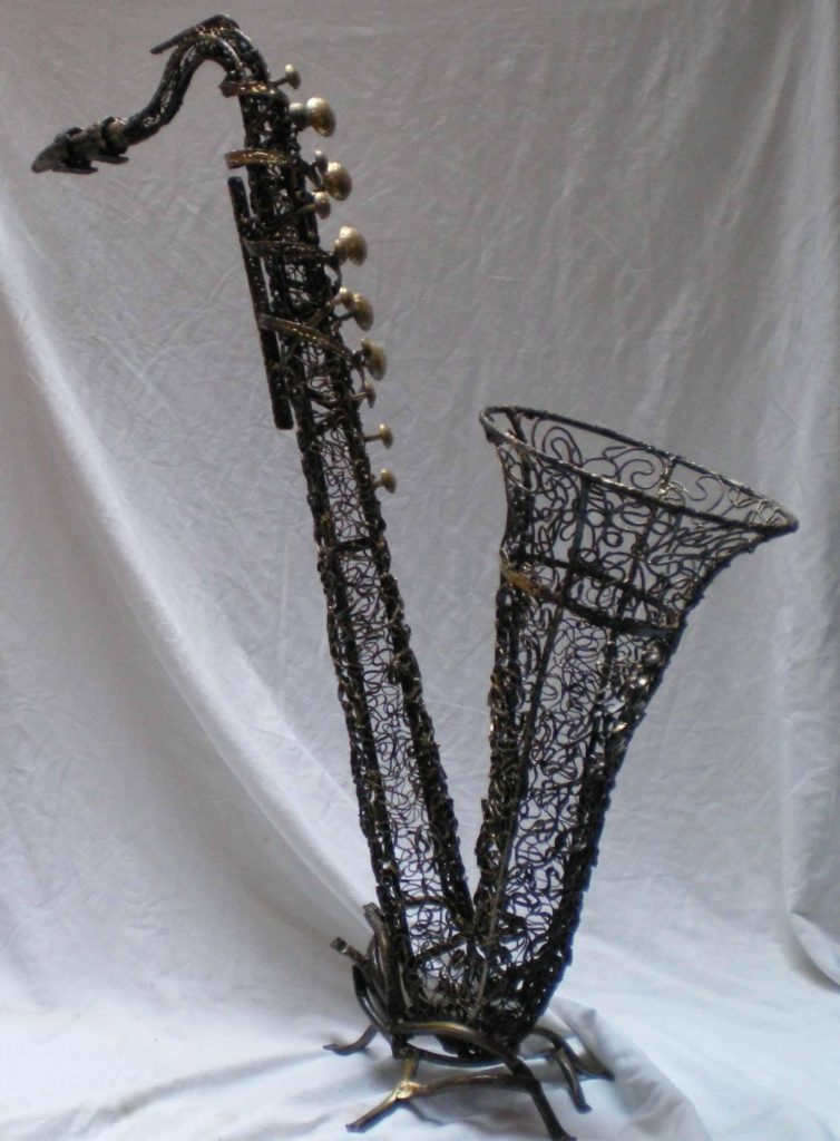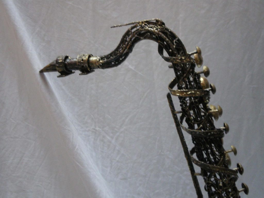 Smaller metal sculptures include musical instruments, furniture and a conglomerations of cascading teapots.