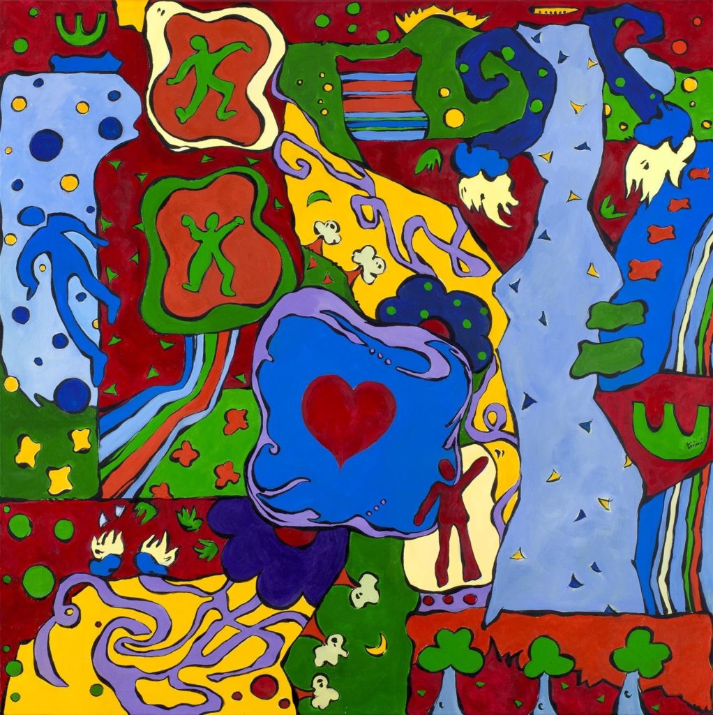 By utilizing motifs from Pop Art to provide a vivid visual presence, she enables us to return to the playfulness and innocence of childhood with the paintings “Parrot” and “Heart”.