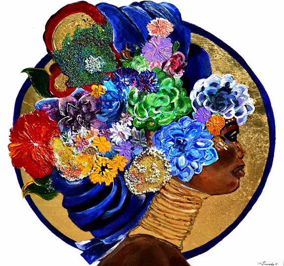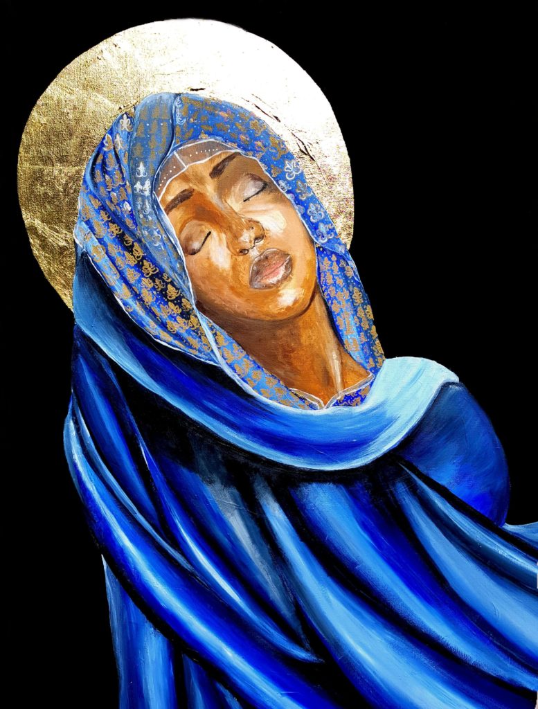 She has also, while utilizing African religious motifs and baroque flourishes from early 17th century Europe – produced wonderfully detailed paintings that fuse multiple cultures and peoples.