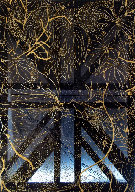 Viktor is famous for her mammoth black and gold works on paper or canvas.