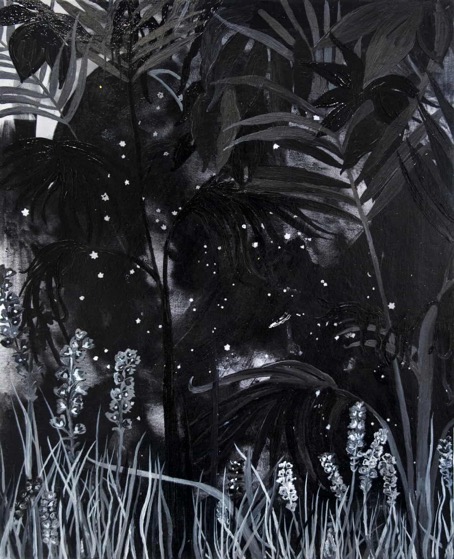 The black in her paintings references “dark matter” purely as an astrophysical entity – the primary material from which the universe was birthed.