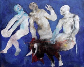 The ghost like nature of his figures set within a swirling misty background suggests to us that the final result is not yet a foregone conclusion.
