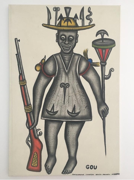 Tokoudagba’s illustrious artistic career began in 1980 when he was commissioned to decorate the walls of a vodun temple in his hometown, Abomey; he was himself an initiate of several vodun societies.