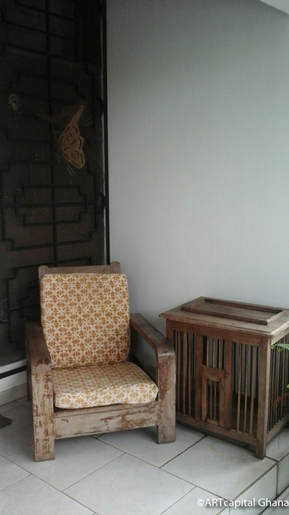 The dark brown low wood armchairs with their art deco influenced lines and wide armrests were present in almost every living room -including the residences of both Grandpa’s at Osu and Teshie respectively and all the uncles and aunties had them too.