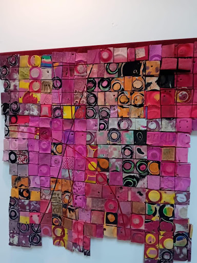 The latter additions give a new dynamism to the wall hangings (examples EWO aka HONEY, METONKO STRAWBOARD, BOSOM NKYIREFUA).