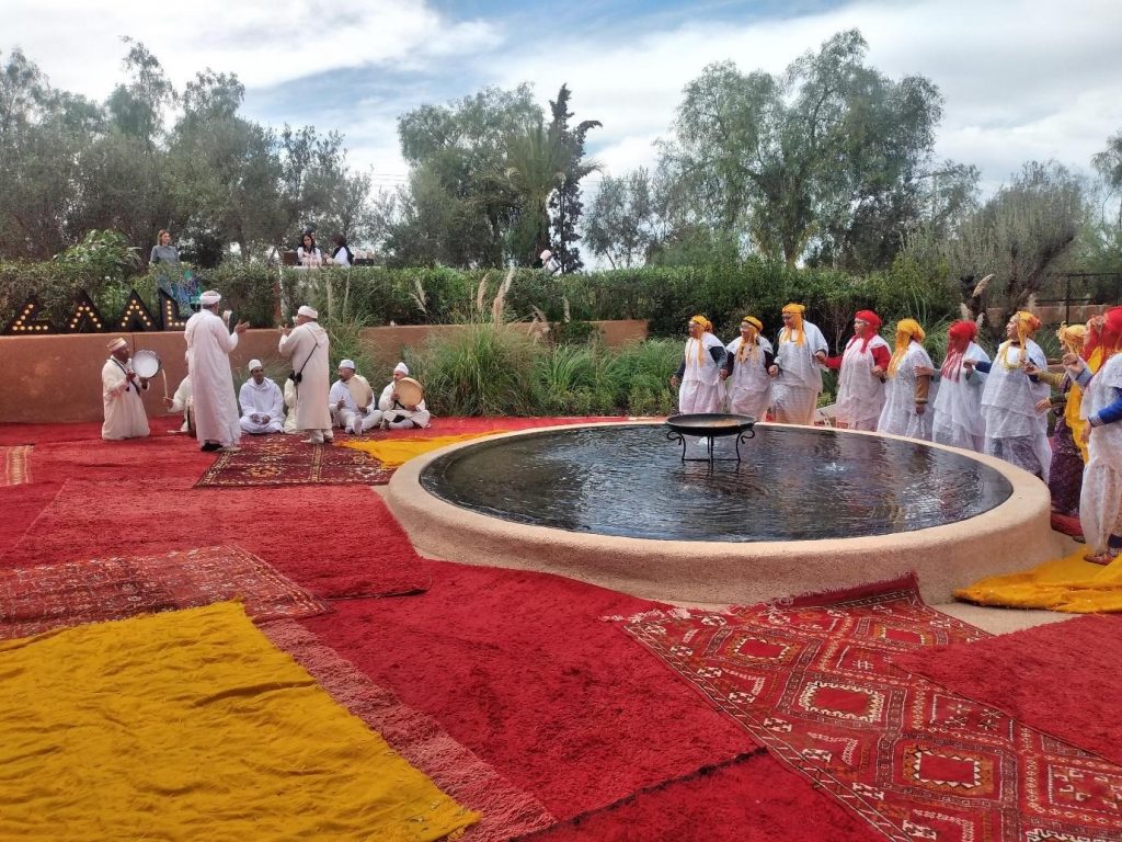 On our arrival, the extensive forecourt and driveway of the building had been completely covered in handwoven Amazigh rugs emphasizing a dignified and prestigious welcome to the invited guests; a tight and cohesive musical group provided live Amazigh traditional music.