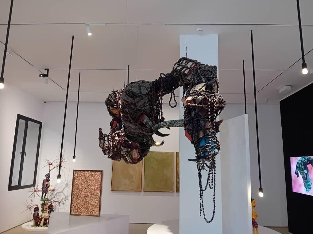 When confronted with a gargantuan multimedia piece hanging from the ceiling comprising bones and horns by the Zimbabwe artist – Takunda Regis Billiat, it takes a while to mobilize yourself again, recollect your thoughts and let alone put pen to paper in a coherent manner.