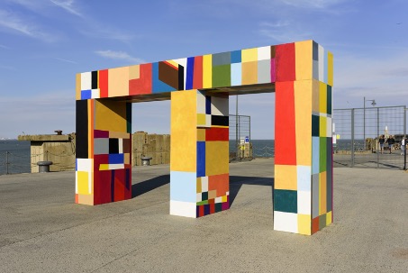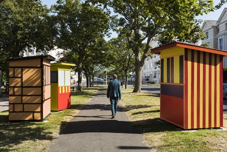 In later years he translated these gridded paintings onto free-standing sculptures – monumental arcades, constructed with plywood, and kioks, which are ubiquitous in the Ghanaian urban landscape.